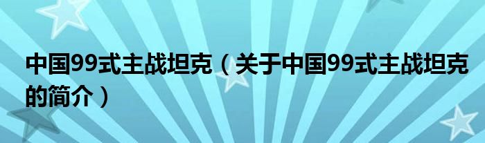 本文關于中國99式主戰坦克的簡介就講解完畢,希望對大家有所幫助。