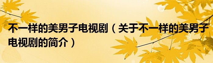 本文關(guān)于不一樣的美男子電視劇的簡(jiǎn)介就講解完畢,希望對(duì)大家有所幫助。