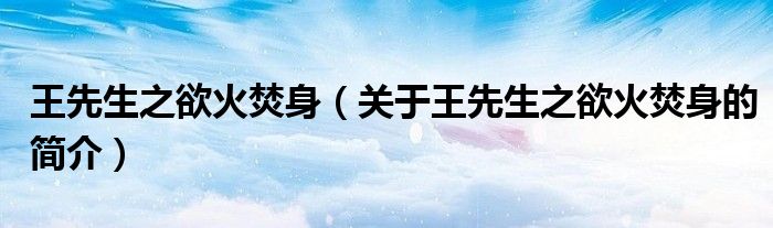 本文關于王先生之欲火焚身的簡介就講解完畢,希望對大家有所幫助。
