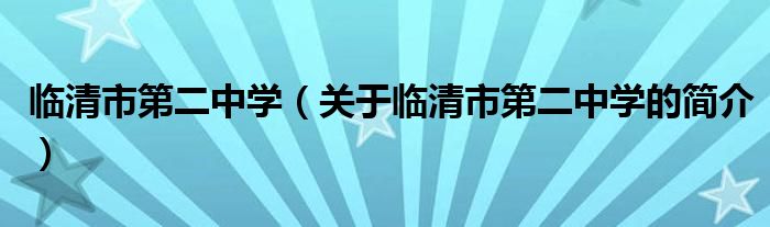 本文關(guān)于臨清市第二中學(xué)的簡介就講解完畢,希望對(duì)大家有所幫助。