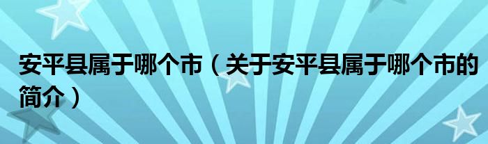 本文關于安平縣屬于哪個市的簡介就講解完畢,希望對大家有所幫助。