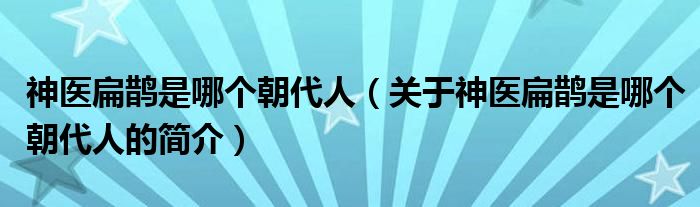 本文關于神醫扁鵲是哪個朝代人的簡介就講解完畢,希望對大家有所幫助。