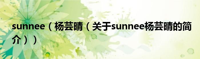 大家好,sunnee 楊蕓晴,關于sunnee 楊蕓晴的簡介很多人還不知道,現在讓我們一起來看看吧!