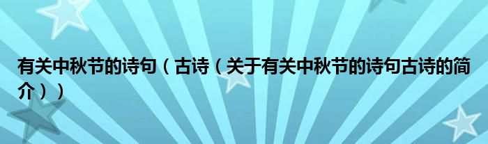 本文關于有關中秋節的詩句 古詩的簡介就講解完畢,希望對大家有所幫助。