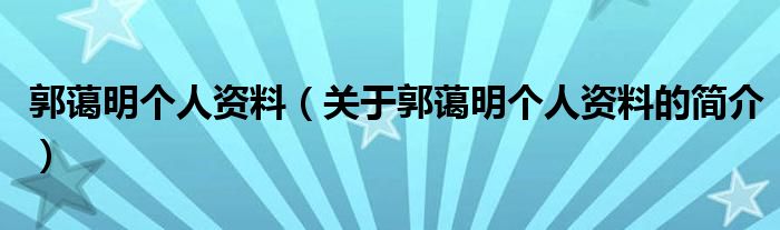 大家好,郭藹明個人資料,關于郭藹明個人資料的簡介很多人還不知道,現在讓我們一起來看看吧!