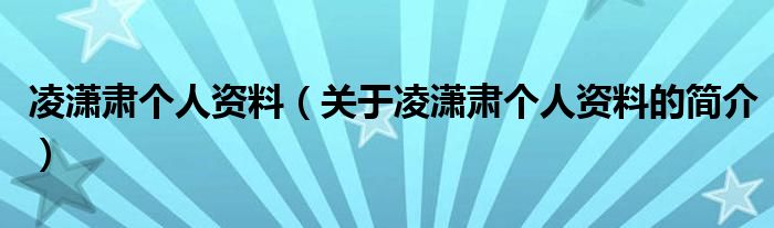 本文關于凌瀟肅個人資料的簡介就講解完畢,希望對大家有所幫助。
