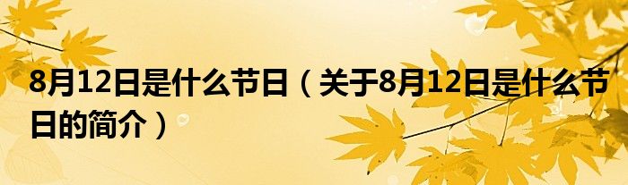 本文關于8月12日是什么節日的簡介就講解完畢,希望對大家有所幫助。