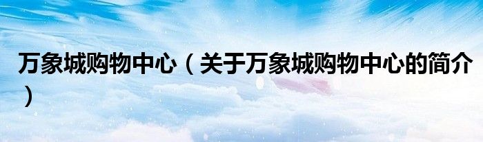 大家好,萬象城購物中心,關于萬象城購物中心的簡介很多人還不知道,現在讓我們一起來看看吧!