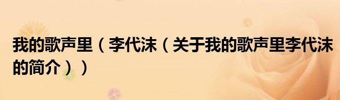 大家好,我的歌聲里 李代沫,關于我的歌聲里 李代沫的簡介很多人還不知道,現在讓我們一起來看看吧!