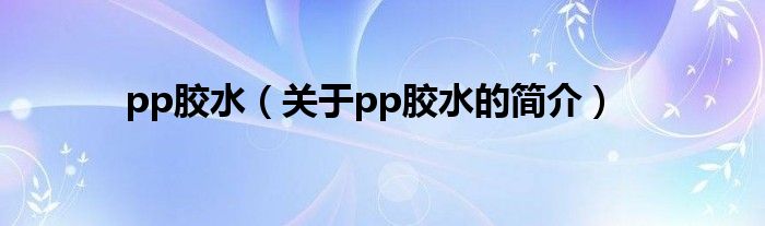 大家好,pp膠水,關于pp膠水的簡介很多人還不知道,現在讓我們一起來看看吧!