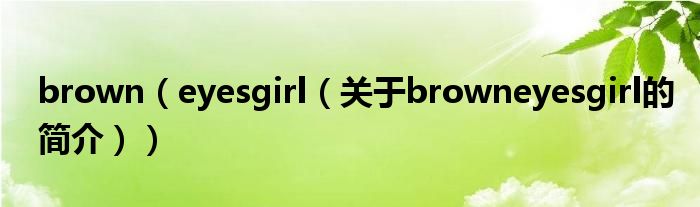 大家好,brown eyes girl,關于brown eyes girl的簡介很多人還不知道,現在讓我們一起來看看吧!