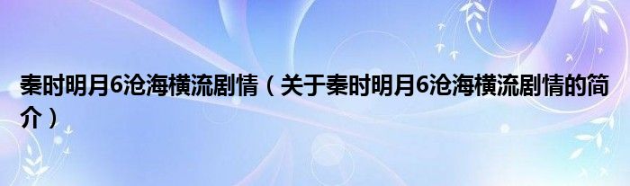 大家好,秦時明月6滄海橫流劇情,關(guān)于秦時明月6滄海橫流劇情的簡介很多人還不知道,現(xiàn)在讓我們一起來看看吧!