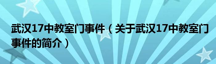 本文關(guān)于武漢17中教室門事件的簡介就講解完畢,希望對大家有所幫助。