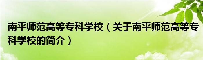 本文關于南平師范高等專科學校的簡介就講解完畢,希望對大家有所幫助。