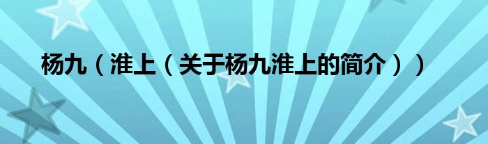 大家好,楊九 淮上,關(guān)于楊九 淮上的簡介很多人還不知道,現(xiàn)在讓我們一起來看看吧!