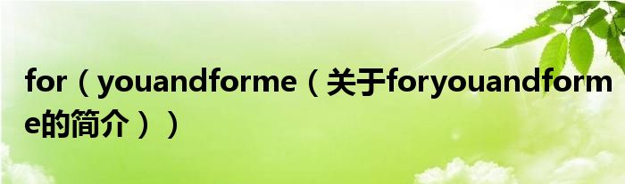大家好,for you and for me,關于for you and for me的簡介很多人還不知道,現在讓我們一起來看看吧!