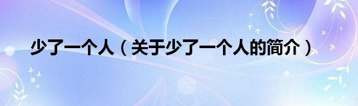 本文關于少了一個人的簡介就講解完畢,希望對大家有所幫助。