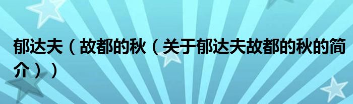 本文關于郁達夫 故都的秋的簡介就講解完畢,希望對大家有所幫助。