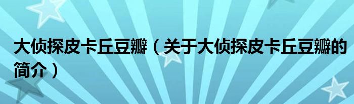 本文關(guān)于大偵探皮卡丘豆瓣的簡介就講解完畢,希望對(duì)大家有所幫助。