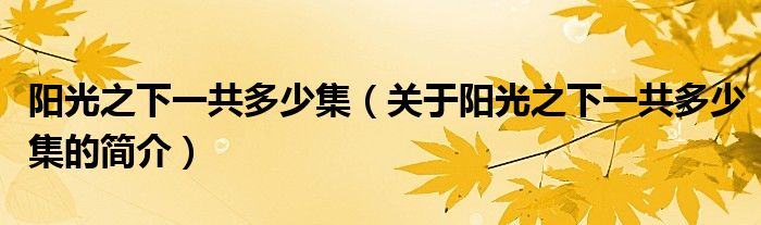 本文關于陽光之下一共多少集的簡介就講解完畢,希望對大家有所幫助。