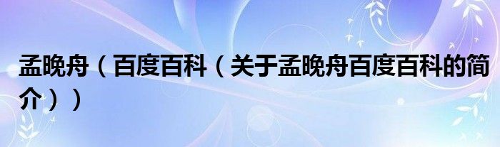 本文關于孟晚舟 百度百科的簡介就講解完畢,希望對大家有所幫助。