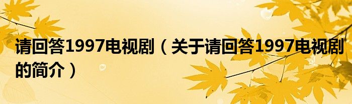 本文關(guān)于請(qǐng)回答1997電視劇的簡(jiǎn)介就講解完畢,希望對(duì)大家有所幫助。