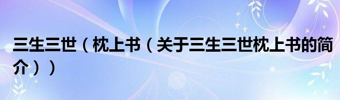 大家好,三生三世 枕上書,關(guān)于三生三世 枕上書的簡介很多人還不知道,現(xiàn)在讓我們一起來看看吧!