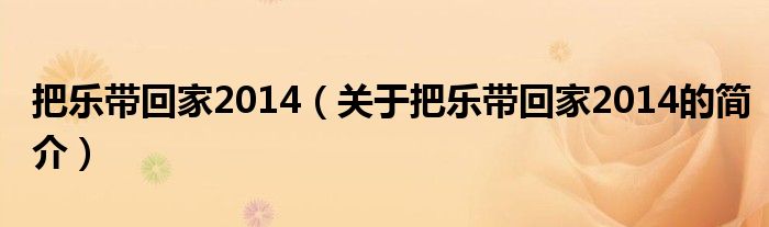 大家好,把樂帶回家2014,關于把樂帶回家2014的簡介很多人還不知道,現在讓我們一起來看看吧!