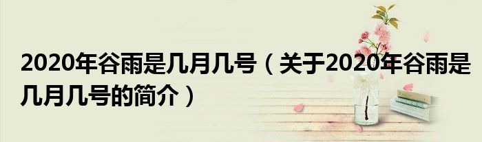 本文關于2020年谷雨是幾月幾號的簡介就講解完畢,希望對大家有所幫助。