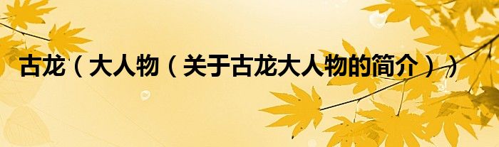 大家好,古龍 大人物,關(guān)于古龍 大人物的簡介很多人還不知道,現(xiàn)在讓我們一起來看看吧!
