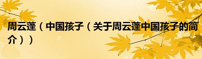 本文關于周云蓬 中國孩子的簡介就講解完畢,希望對大家有所幫助。