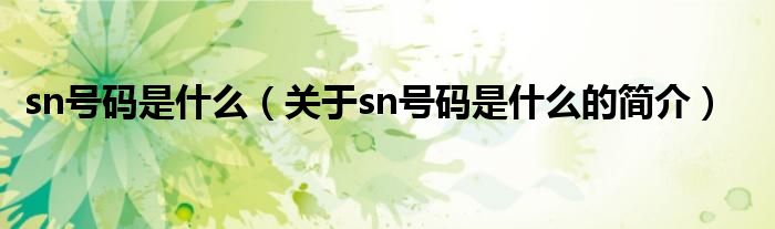 本文關于sn號碼是什么的簡介就講解完畢,希望對大家有所幫助。