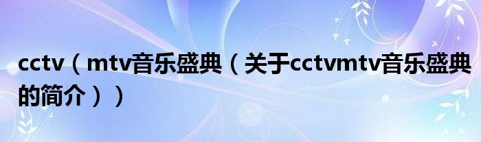 本文關于cctv mtv音樂盛典的簡介就講解完畢,希望對大家有所幫助。