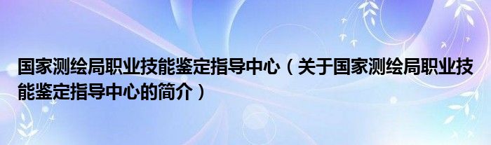 本文關(guān)于國家測繪局職業(yè)技能鑒定指導(dǎo)中心的簡介就講解完畢,希望對大家有所幫助。