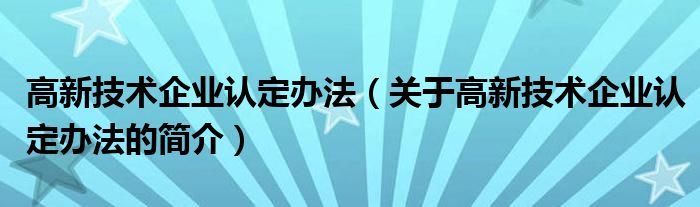 本文關于高新技術企業認定辦法的簡介就講解完畢,希望對大家有所幫助。