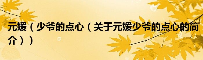 本文關于元媛 少爺?shù)狞c心的簡介就講解完畢,希望對大家有所幫助。