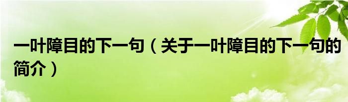 本文關于一葉障目的下一句的簡介就講解完畢,希望對大家有所幫助。