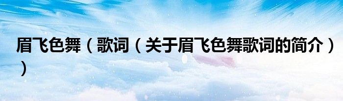 本文關(guān)于眉飛色舞 歌詞的簡(jiǎn)介就講解完畢,希望對(duì)大家有所幫助。