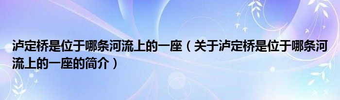 本文關(guān)于瀘定橋是位于哪條河流上的一座的簡介就講解完畢,希望對大家有所幫助。