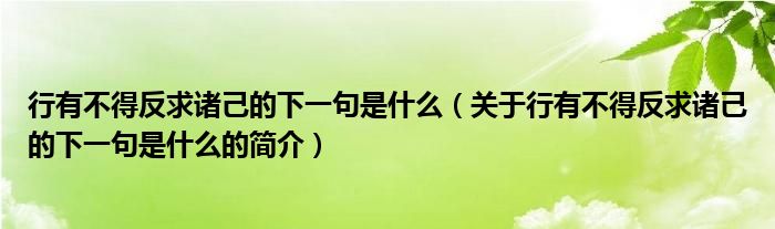 本文關(guān)于行有不得反求諸己的下一句是什么的簡介就講解完畢,希望對大家有所幫助。