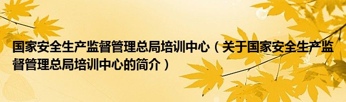 本文關于國家安全生產監督管理總局培訓中心的簡介就講解完畢,希望對大家有所幫助。
