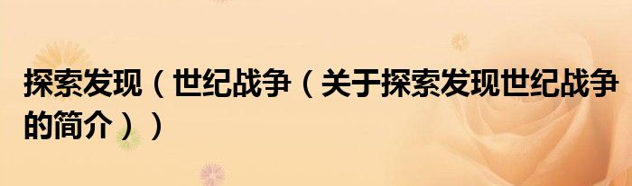 大家好,探索發現 世紀戰爭,關于探索發現 世紀戰爭的簡介很多人還不知道,現在讓我們一起來看看吧!