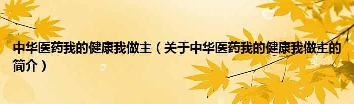 本文關于中華醫藥我的健康我做主的簡介就講解完畢,希望對大家有所幫助。