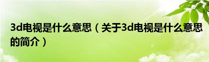 本文關于3d電視是什么意思的簡介就講解完畢,希望對大家有所幫助。