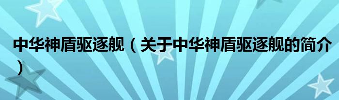 本文關于中華神盾驅逐艦的簡介就講解完畢,希望對大家有所幫助。