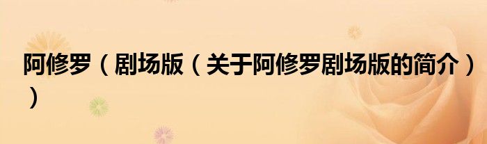 本文關于阿修羅 劇場版的簡介就講解完畢,希望對大家有所幫助。