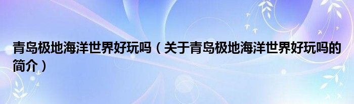 大家好,青島極地海洋世界好玩嗎,關于青島極地海洋世界好玩嗎的簡介很多人還不知道,現在讓我們一起來看看吧!