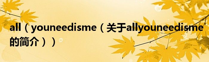 大家好,all you need is me,關于all you need is me的簡介很多人還不知道,現在讓我們一起來看看吧!