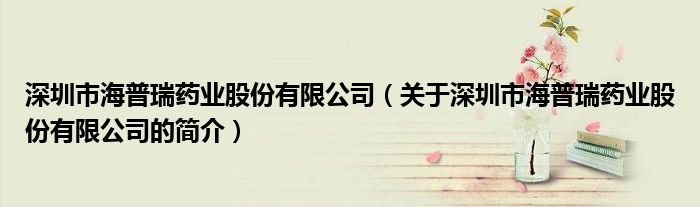 本文關(guān)于深圳市海普瑞藥業(yè)股份有限公司的簡介就講解完畢,希望對大家有所幫助。
