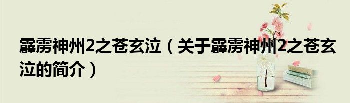 本文關于霹靂神州2之蒼玄泣的簡介就講解完畢,希望對大家有所幫助。